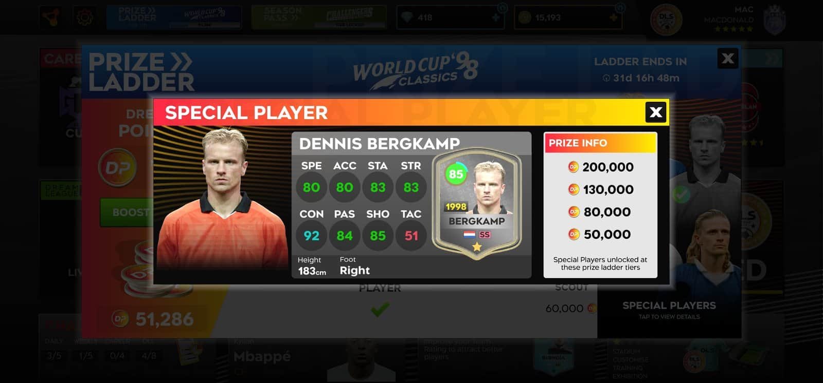 Special Players are not available through regular transfers. Instead, they can be unlocked by earning Dream League Points (DP) and progressing through the Prize Ladder system.