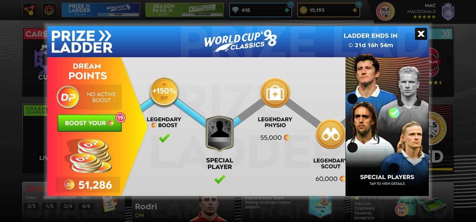 - Reach Special Player Unlock Milestones – Once you collect enough DP, you can unlock Special Players as rewards.