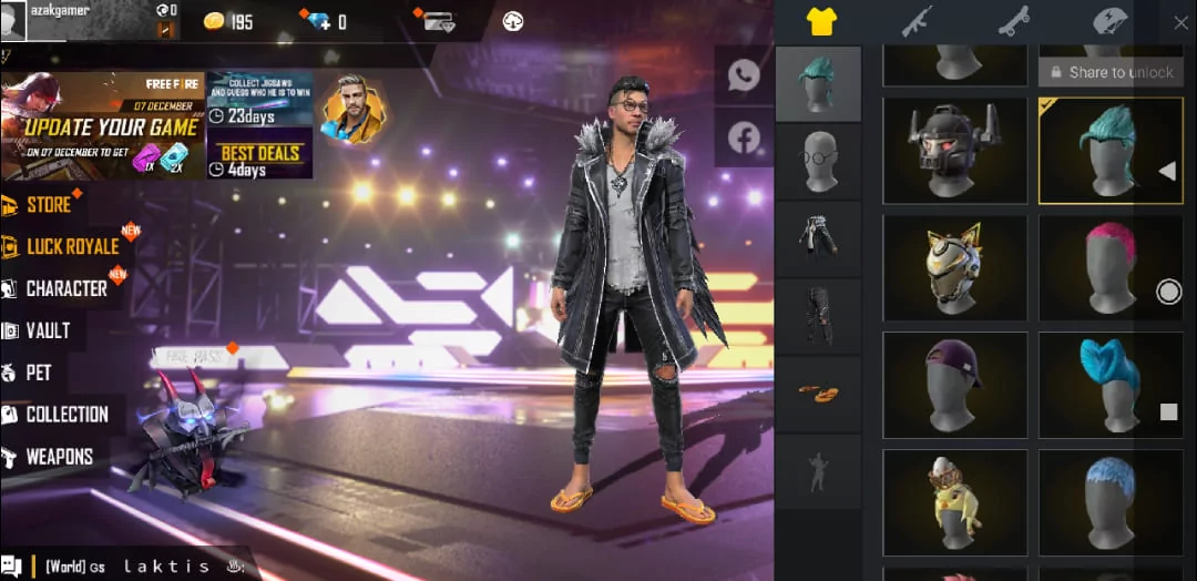 Inside Nicoo, browse through the available skins, outfits, and weapon cosmetics. Pick the ones you want to unlock in Free Fire. -